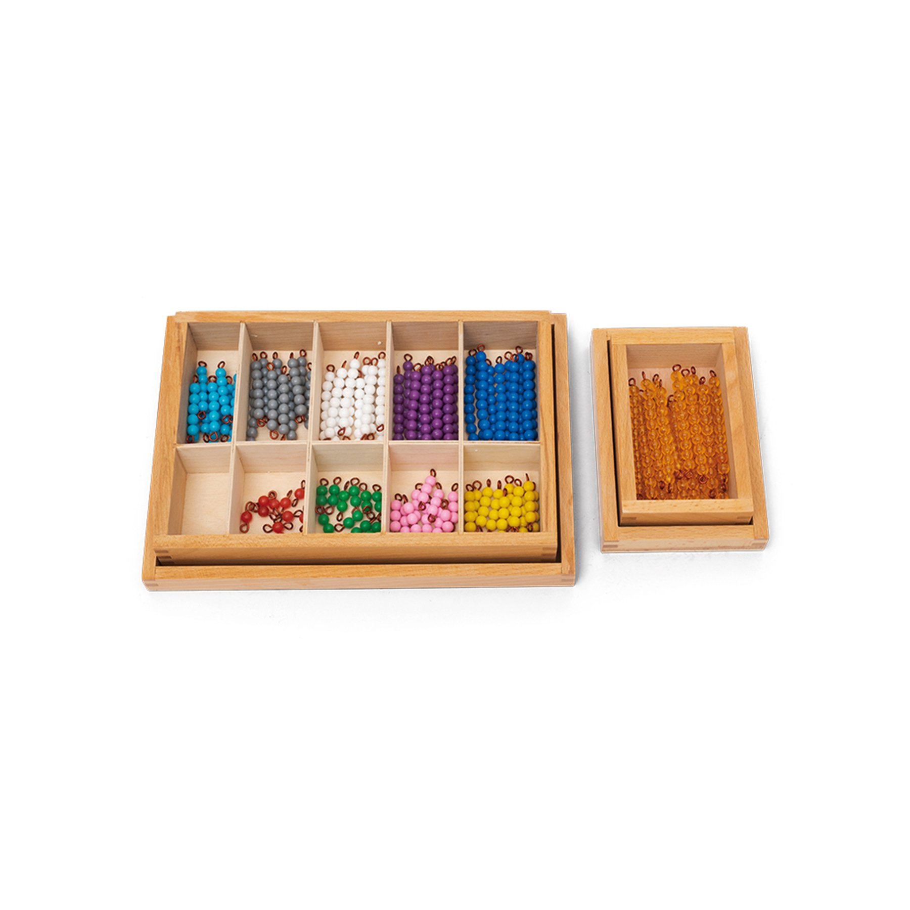 Продуктите позволяват на децата да придобият знания, компетентност, умения и опит чрез собствените си действия, ангажиращи всички сетива. Учебните материали, включително математически, ботанически и географски карти, са в класически форми, изработени от висококачествено дърво.