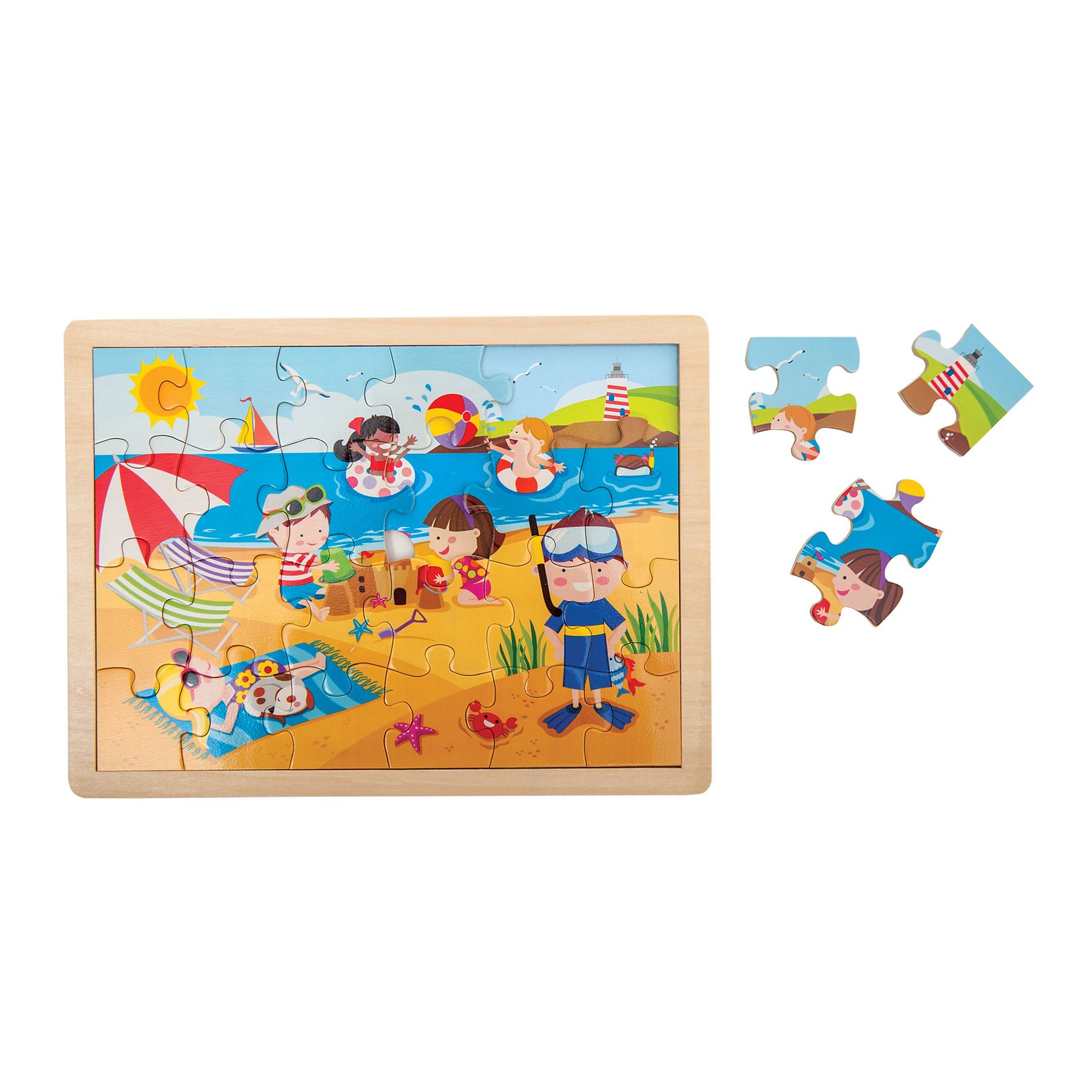 Пъзелът изобразява деца, които се наслаждават на лятната обстановка.