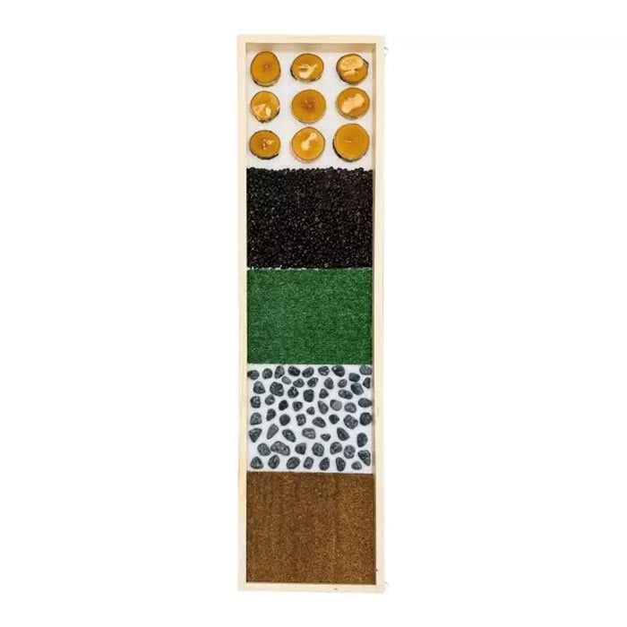 Сензорната дъска „Природа“ на Nowa Szkola е перфектен инструмент за стимулиране на детските сетива и развиване на моториката чрез разнообразни природни елементи. Дъската включва различни текстури и релефи, вдъхновени от природата — като дървесни кори, листа, камъчета и други. Тя насърчава децата да изследват и докосват, което подпомага развитието на тактилната чувствителност, координацията и концентрацията.