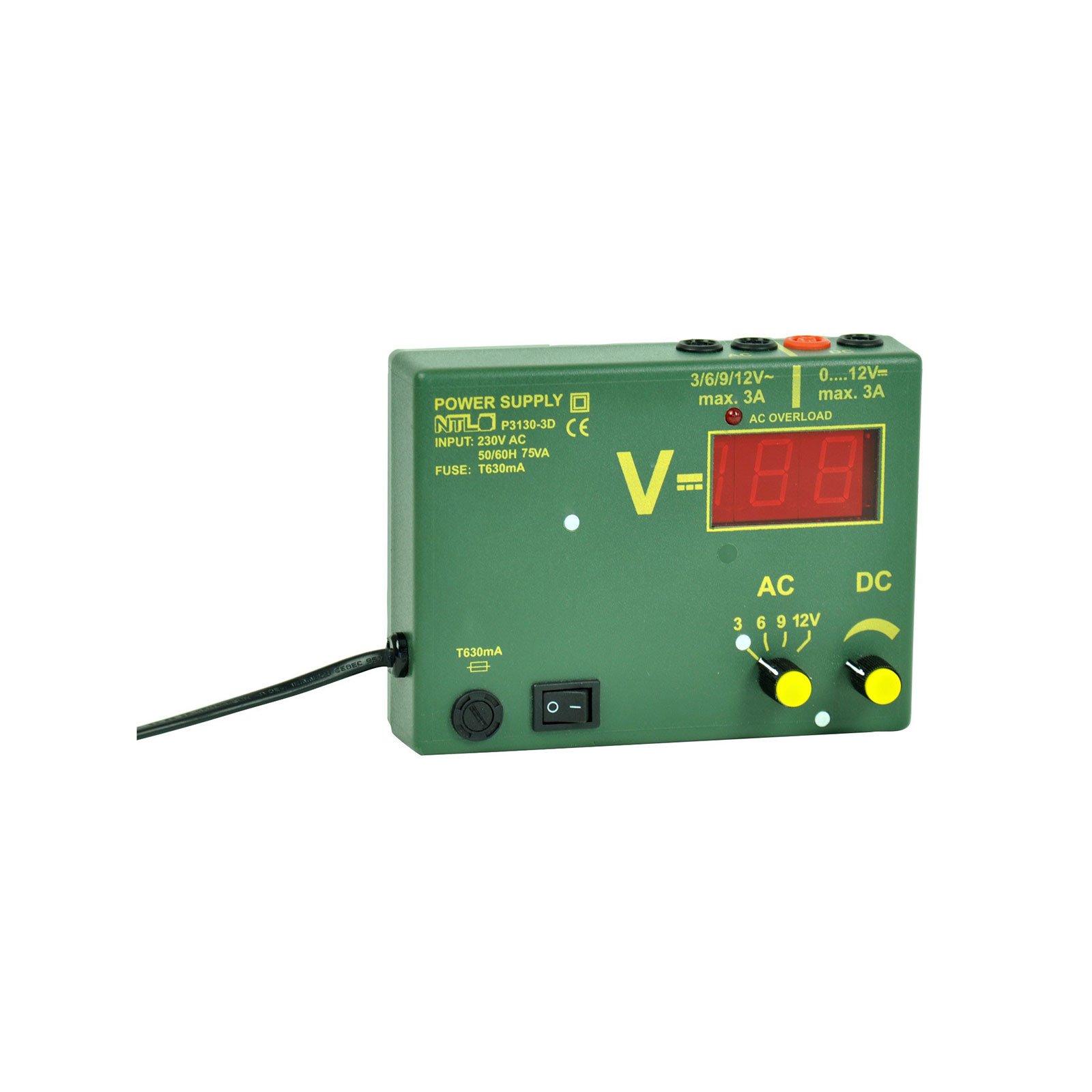 -3, 6, 9 или 12 V AC, променливо избираемо, макс. 3 A;