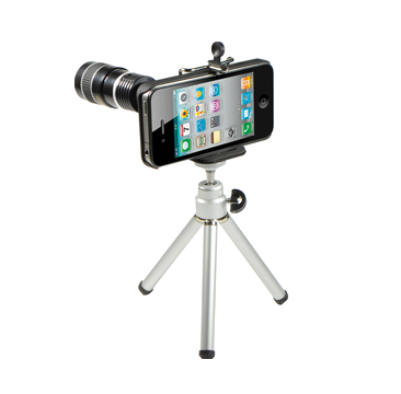 В комплекта: 1x Telescop lens, 1x Mini-tripod - трипод за iPhone, 1x кейс за iPhone 4/4S, кърпичка и упътване на англ. език