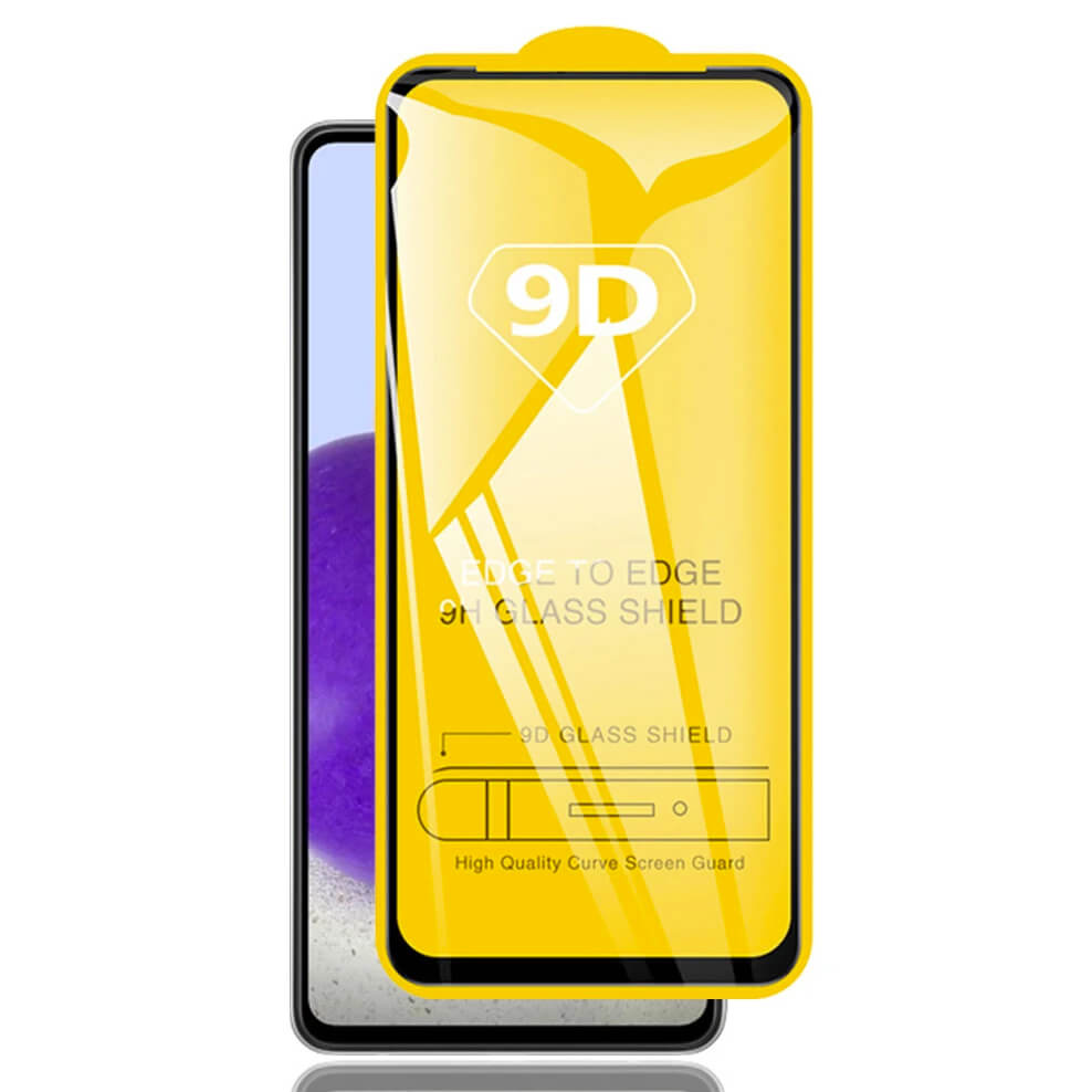 Обхващащо и ръбовете стъклено защитно покритие за дисплея на Samsung Galaxy A72 - Premium Full Glue 9D Edge to Edge Tempered Glass (черен)