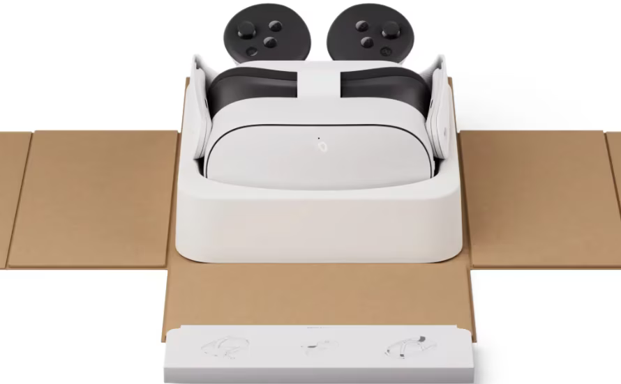Очила за виртуална реалност Oculus Quest 3S 128GB, безжични, Single Fast Switch LCD (1832x1920 на око) дисплей, Quest Touch Plus (6dof) контролери, Wi-Fi, USB, за PC, бели768.99 лв