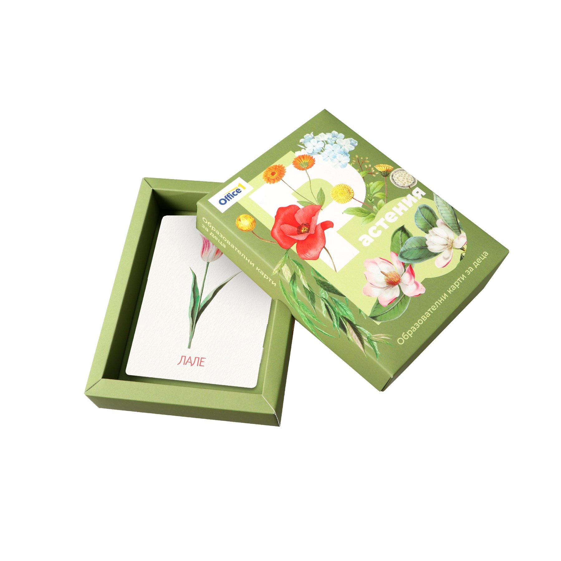 Открийте чудния свят на растенията заедно със своето любознателно дете и образователни карти „Растения“ от Office 1. Впуснете се в дълги игри, изпълнени с интересни факти, любопитна информация и пъстри цветове.