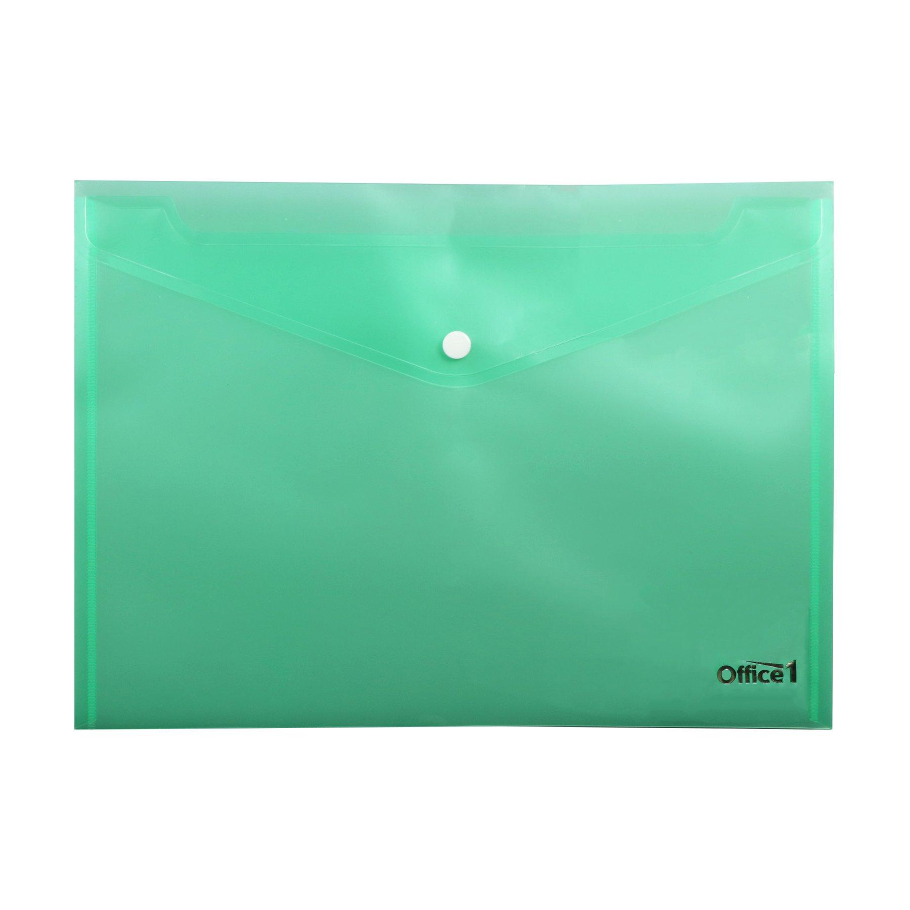 Office 1 Папка, А4, с копче, прозрачна, зелена