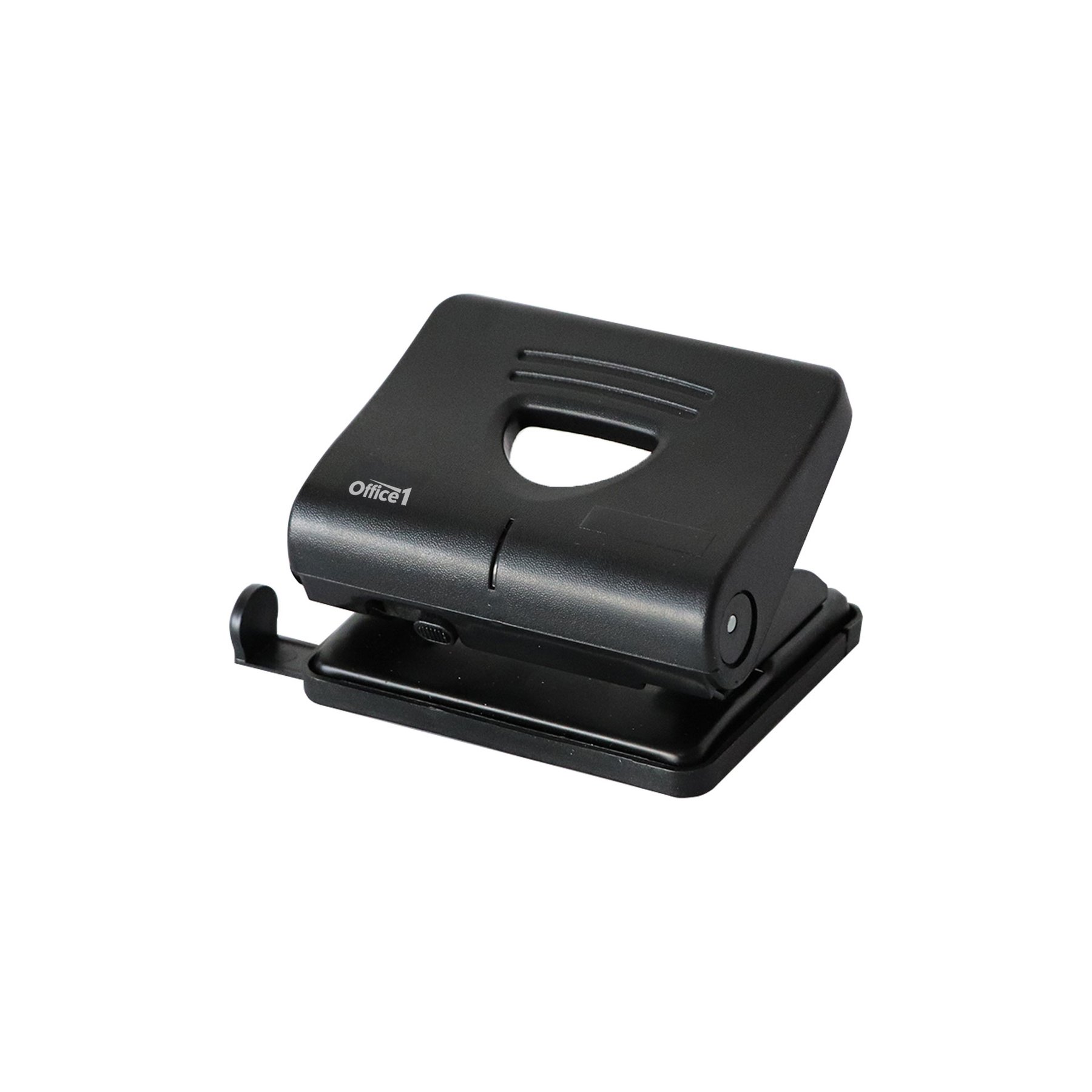 Перфоратор с ограничител с два отвора. Перфораторът е с метална конструкция и пластмасово тяло, което го прави надежден и устойчив.