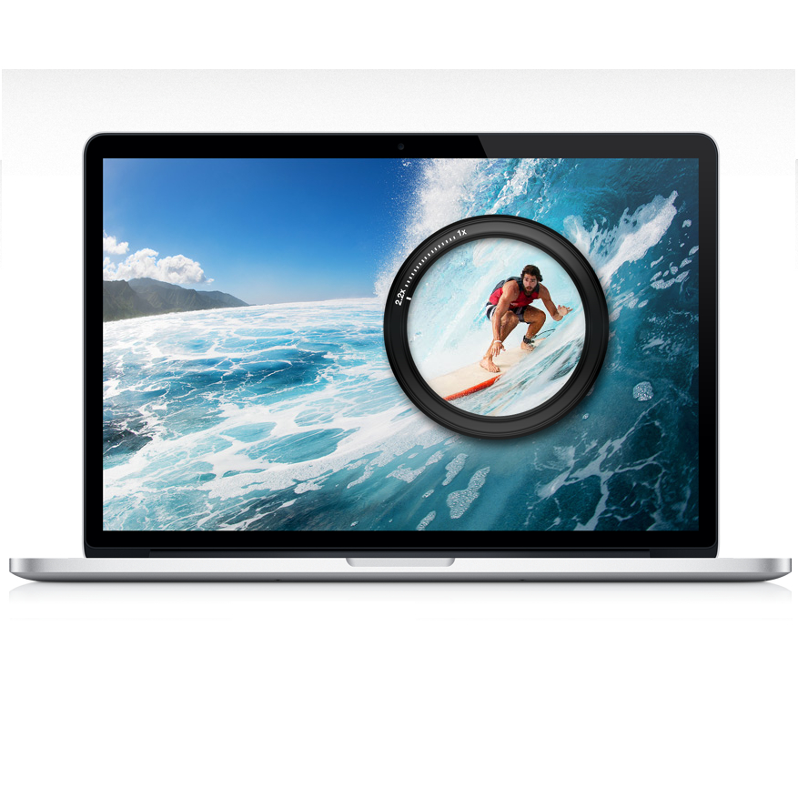 Ретина дисплей: 13.3-inch (diagonal) LED-задно осветен лъскав широкоекранен дисплей с резолюция (2560 х 1600) с 227 пиксела на инч и поддръжка на милиони цветове. IPS технология,