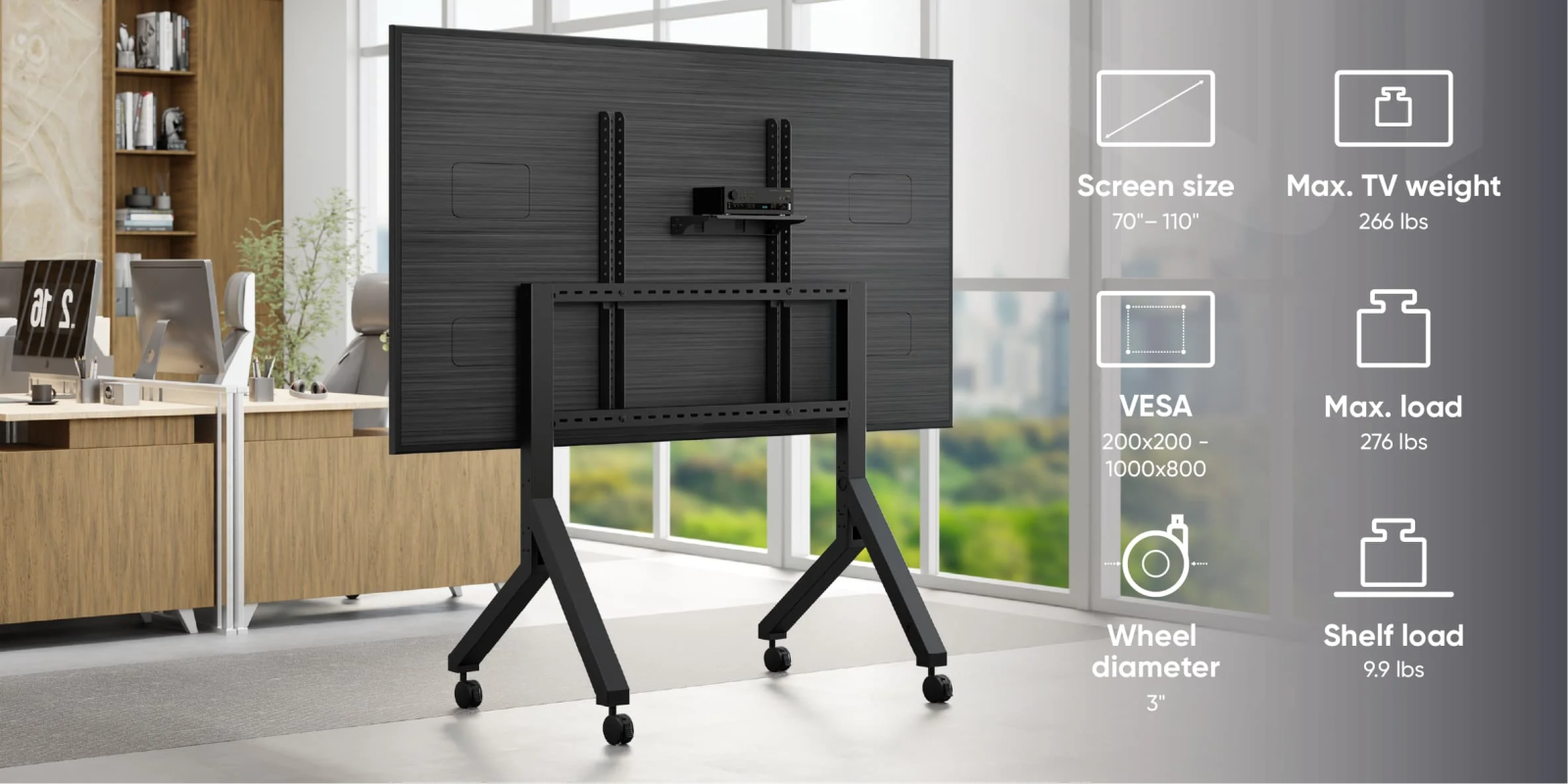 Стойка за телевизор Roline 17.99.1174, мобилна, за под, за екрани 110 - 170 см, VESA 100, до 10 кг207.06 €