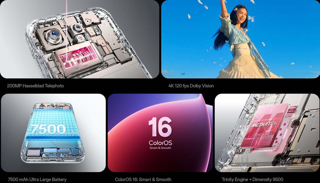 Fueled by the cutting-edge OPPO silicon-carbon anode technology, the 7500 mAh battery offers massive capacity and exceptional cycle life for all-day performance.15