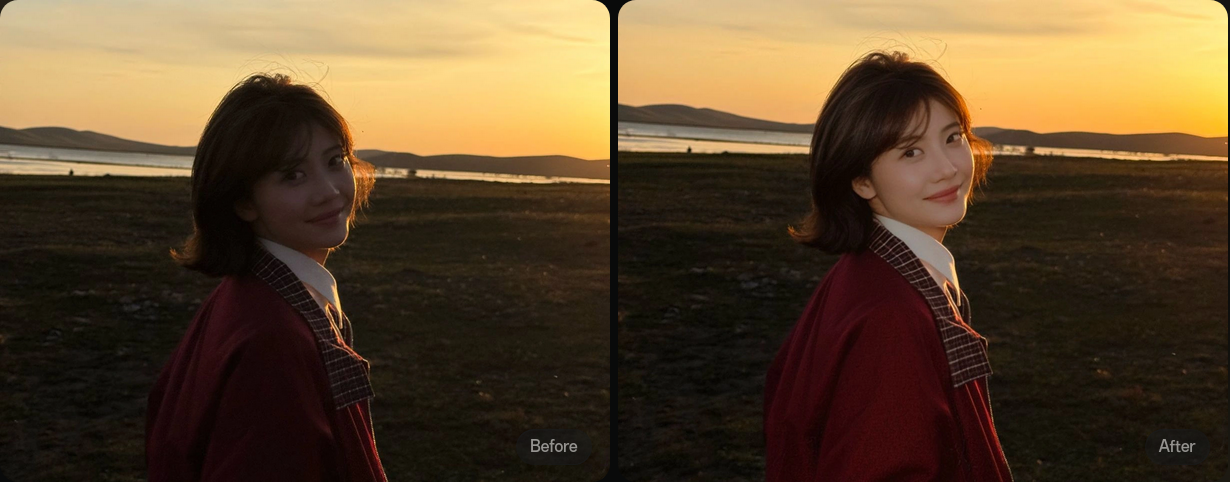 Say goodbye to poorly lit photos. AI Portrait Glow analyzes each shot and instantly applies the ideal lighting, whether flash, natural, or studio, so every portrait looks bright, balanced, and beautiful.