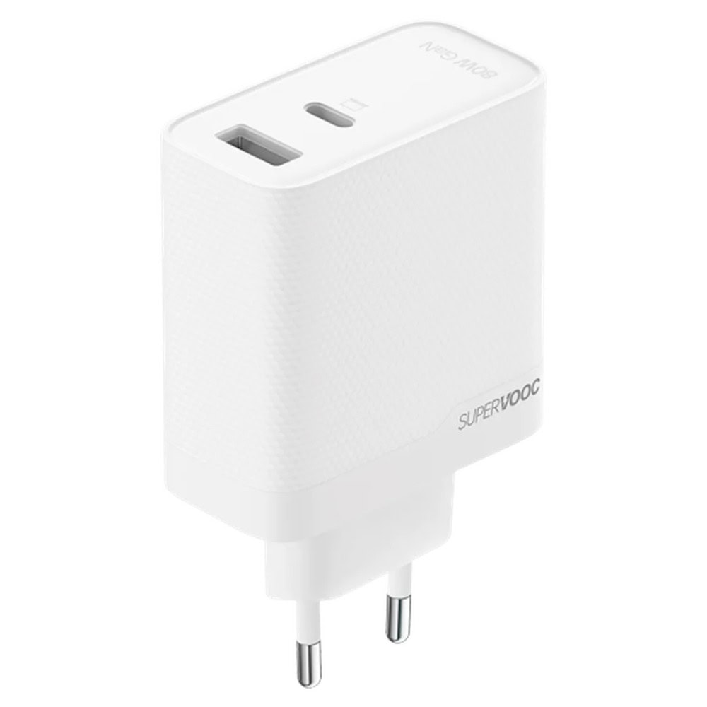 Зарядно устройство Oppo - SuperVooc Dual Ports GaN, USB-A/C, 80W, бяло
