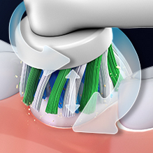 По-добро отстраняване на плака Oral-B Pro Series 1 разполага с кръгла глава на четката, която се контурира добре около зъбите, осигурявайки отлично почистване и по-здрави венци, като същевременно премахва до 100% повече плака от ръчна четка за зъби. | ![]() |