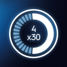 Таймер Вграденият таймер ви помага да поддържате препоръчаните от зъболекаря две минути време за миене на зъбите и издава звуков сигнал на всеки 30 секунди, за да смените зоната на миене. | ![]() |