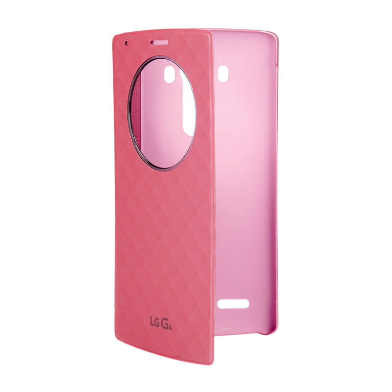 Оригинален кожен калъф с отвор за LG G4 - LG Quick Circle Case CFV-100 (розов)