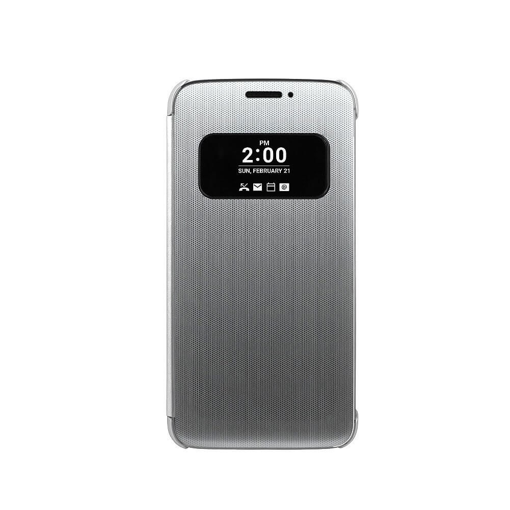 Оригинален кожен калъф, тип портфейл за LG G5, G5 SE - LG Flip Case Quick Cover View CFV-160 (сребрист)