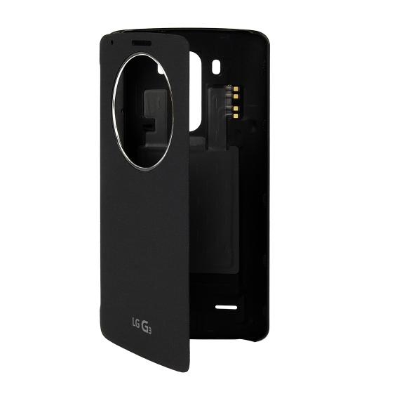 Оригинален кожен калъф (за безжично захранване) с отвор за LG G3 - LG Quick Circle Case CCF-340G (черен)