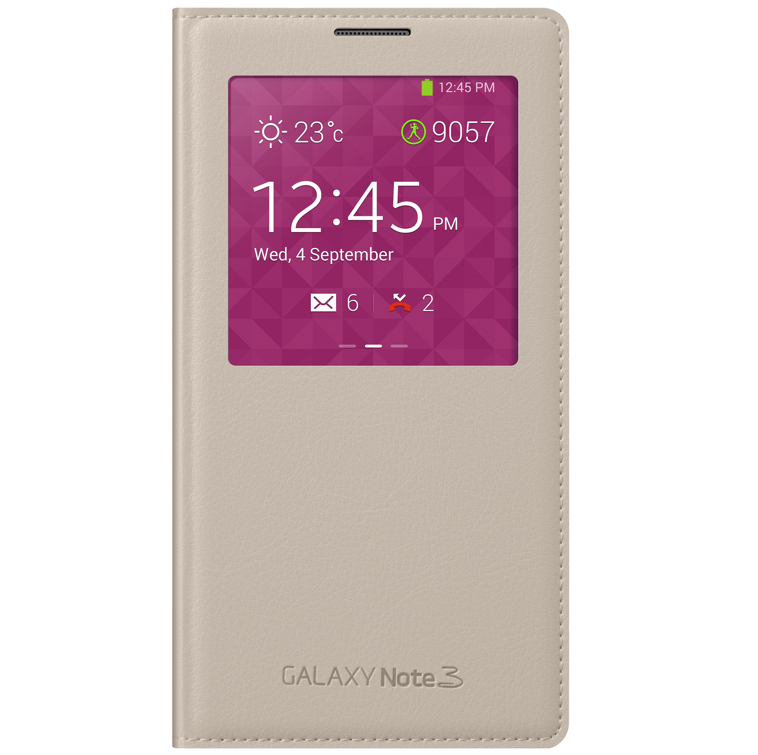 Иновативният дизайн на този оригинален калъф за Samsung, ви позволява да виждате част от дисплея със зададена информация от вас по всяко време, дори и когато калъфа не е отворен