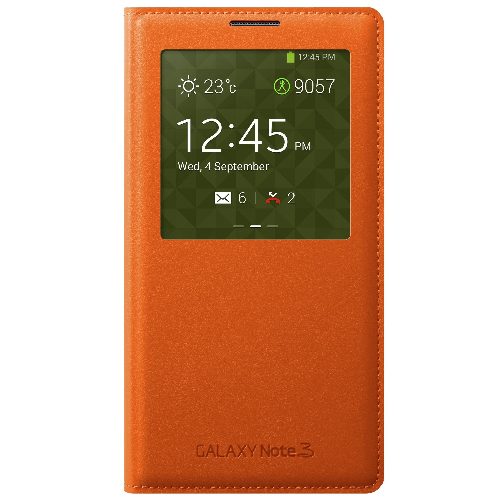 Иновативният дизайн на този оригинален калъф за Samsung, ви позволява да виждате част от дисплея със зададена информация от вас по всяко време, дори и когато калъфа не е отворен