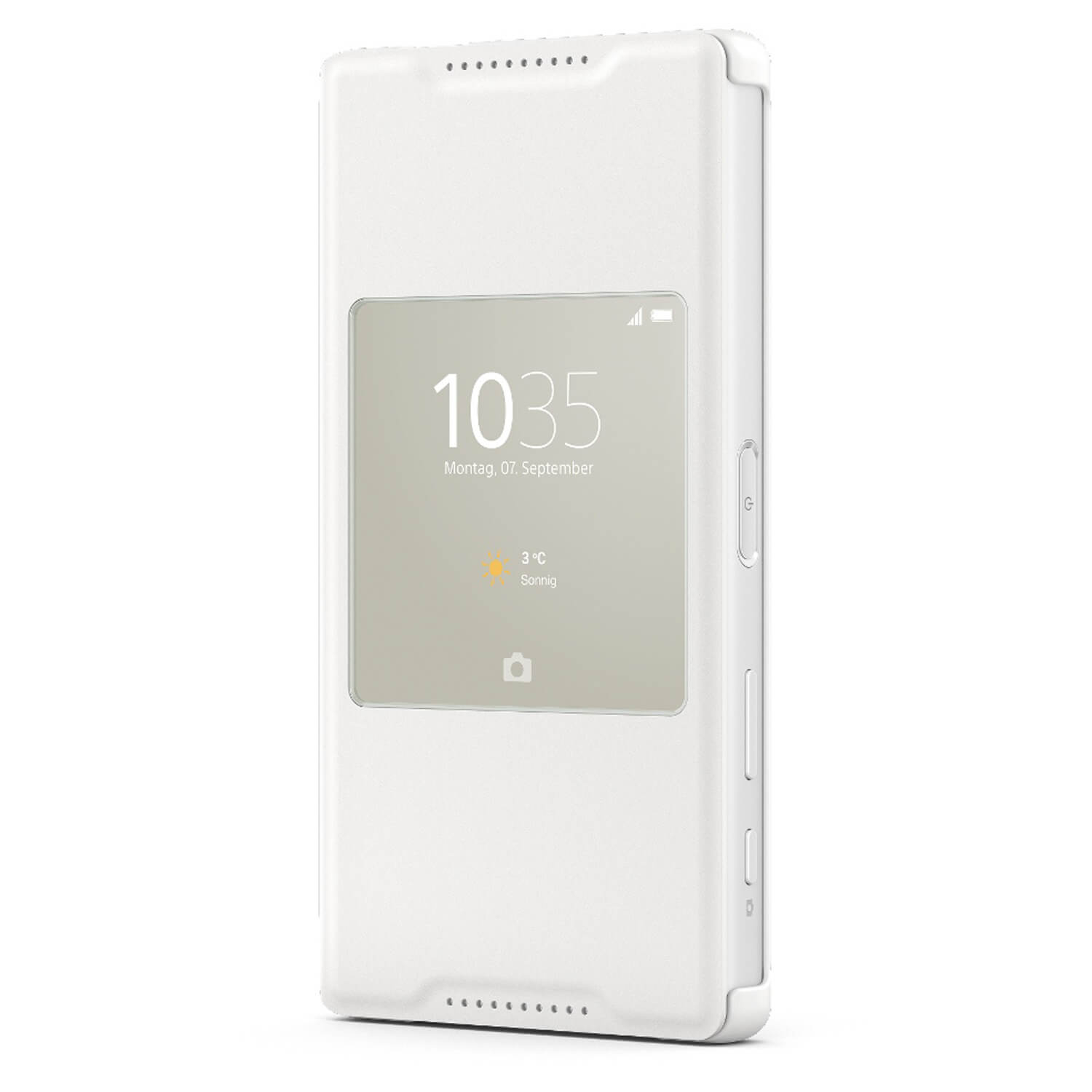 Оригинален кожен кейс и поставка за Xperia Z5 Compact - Sony Flip Case Smart Style Cover SCR44 (бял)