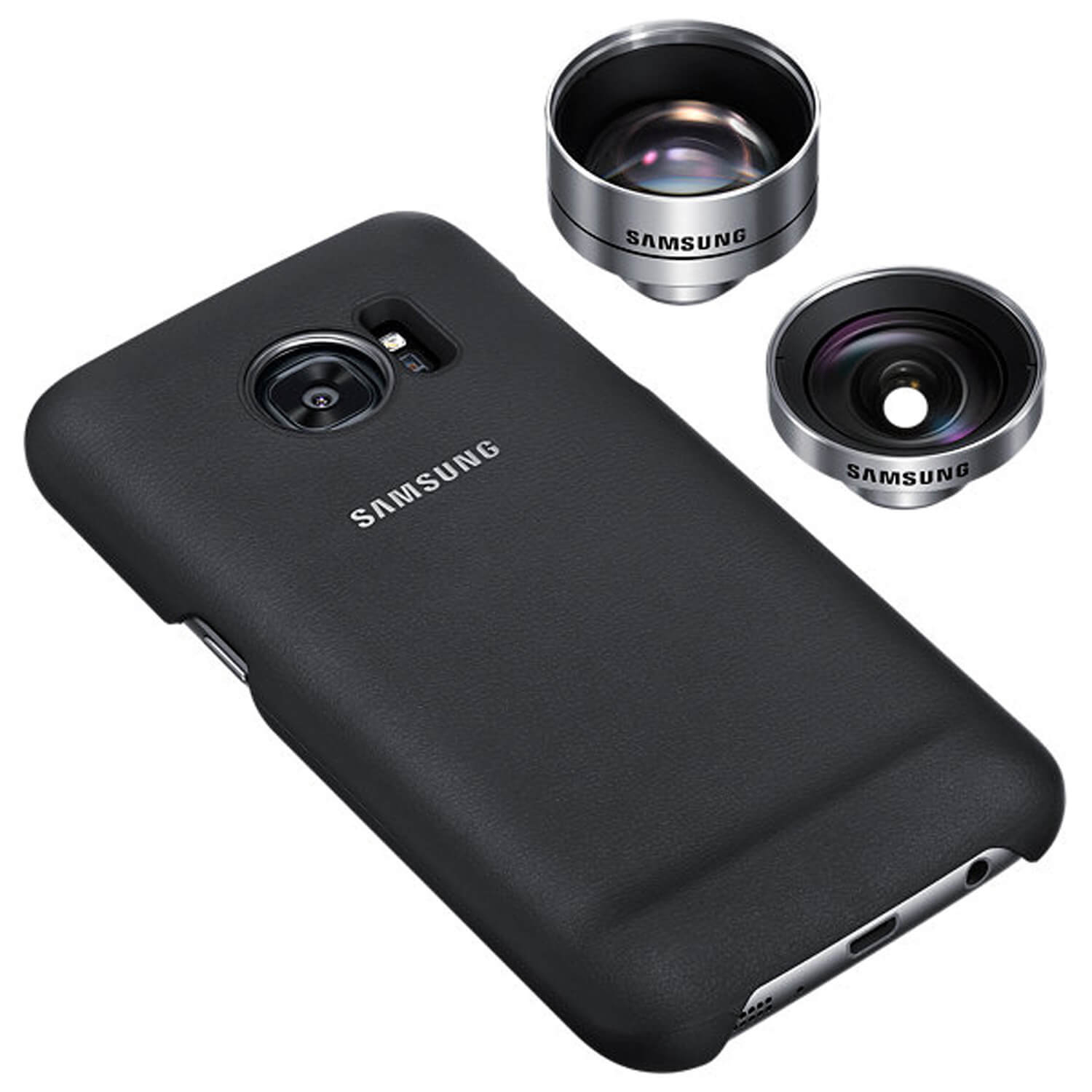 Contents: Samsung Clip-On-Cover with screw thread to fasten photo lenses, wide angle lens, telephoto lens, boxes for storing the lenses, manual