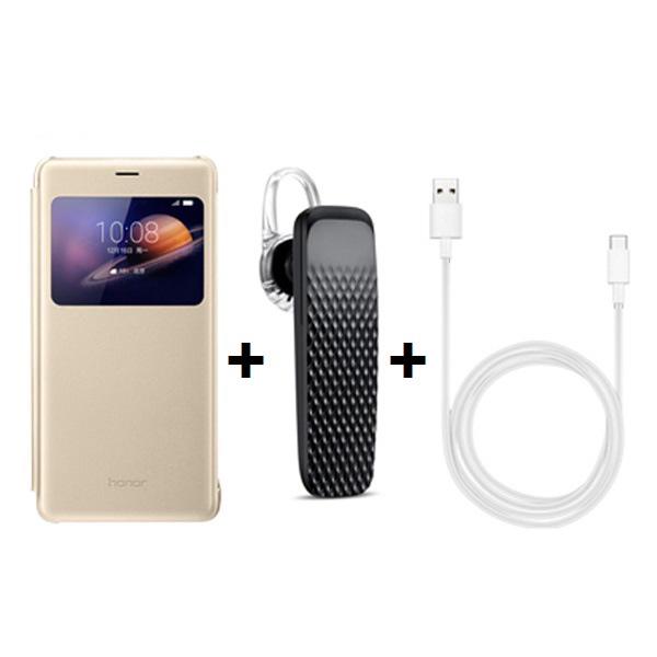 Оригинален комплект състоящ се от кожен кейс, USB-C кабел, MicroUSB кабел и Bluetooh слушалка
