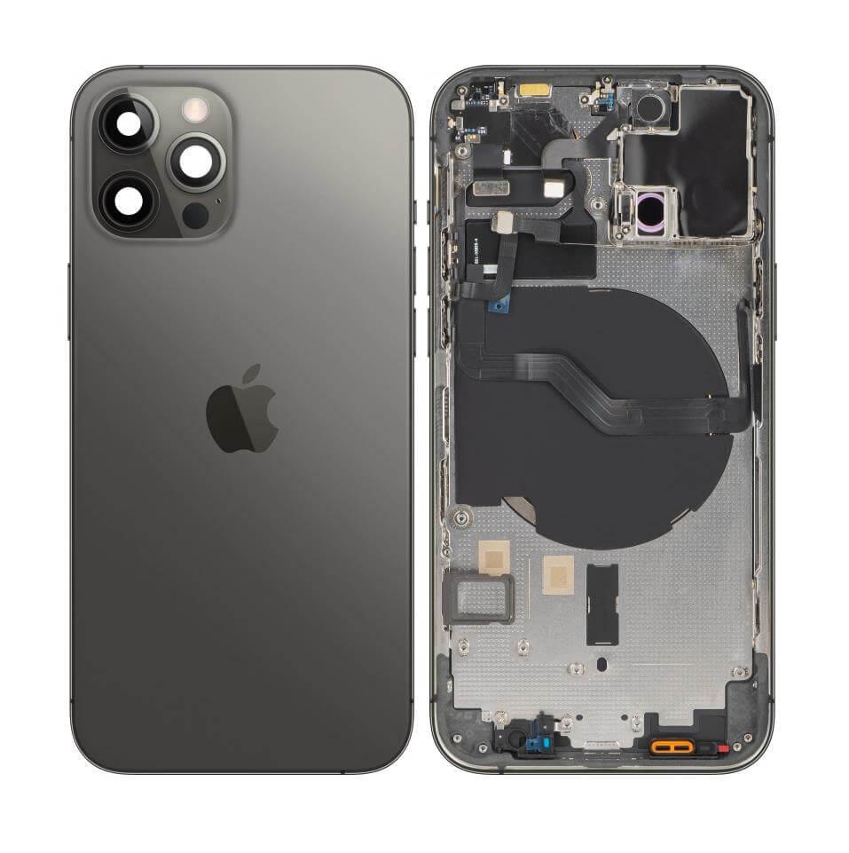 Оригинален резервен заден капак със заменено задно стъкло - Apple iPhone 12 Pro Backcover Full Assembly (черен)