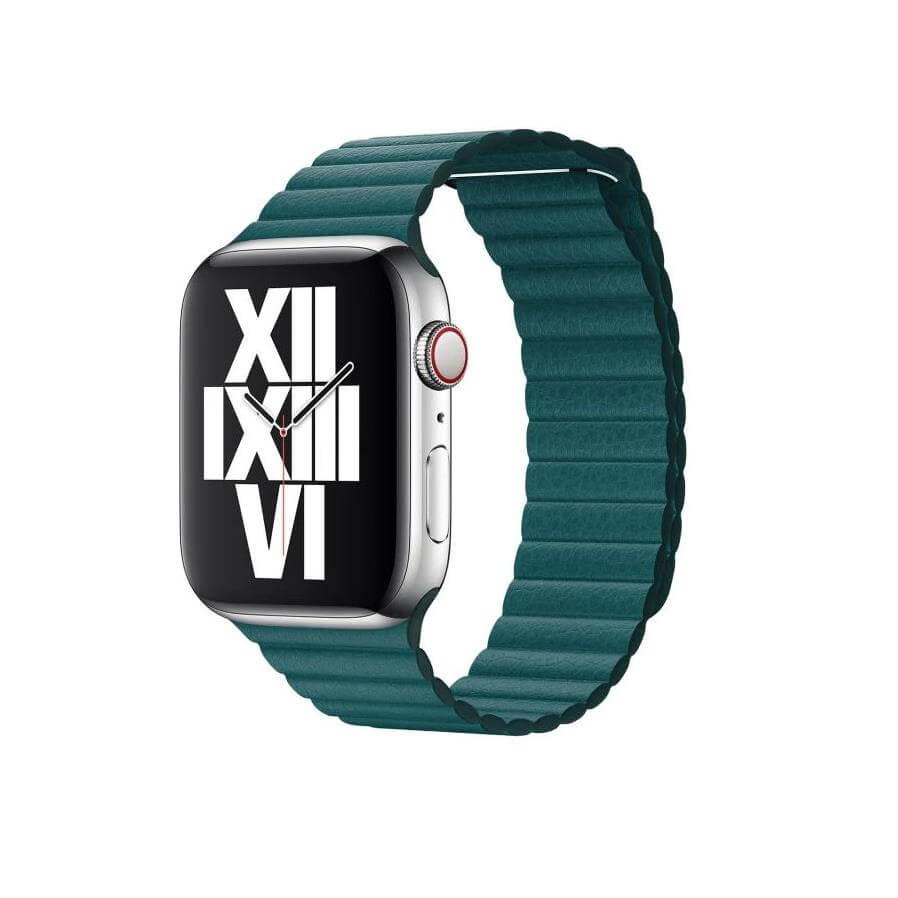 Оригинална кожена каишка от естествена кожа за Apple Watch 42мм, 44мм, 45мм, 46мм, Ultra, Ultra 2, Ultra 3 49мм - Apple Leather Loop Peacock Large