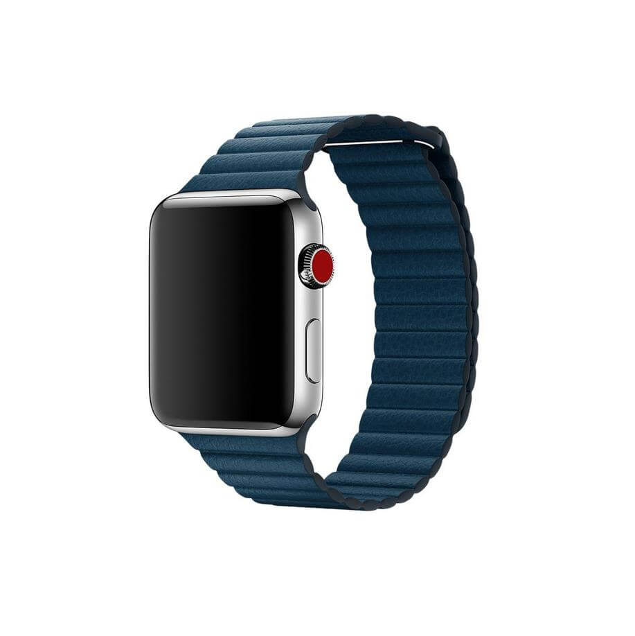 Оригинална кожена каишка от естествена кожа за Apple Watch 42мм, 44мм, 45мм, 46мм, Ultra, Ultra 2, Ultra 3 49мм - Apple Leather Loop Cosmos Blue Large