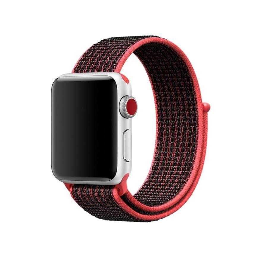 Оригинална текстилна каишка за Apple Watch 42мм, 44мм, 45мм, 46мм, Ultra 49мм - Apple Watch Nike Band Sport Loop (черен-червен)
