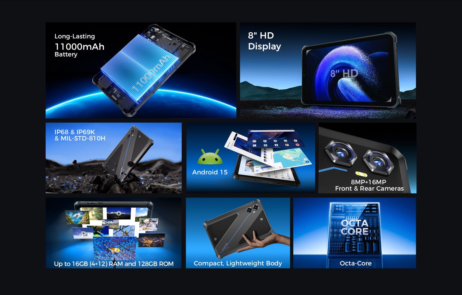 Таблет Ulefone Armor Pad Pro (черен), 4G/LTE, 8" (20.32cm) HD+ IPS дисплей, осемядрен MediaTek MT8788 2.0GHz, 8GB RAM, 128GB Flash памет(+microSD слот), 48 & 32 Mpix камери, Android174.65 €
