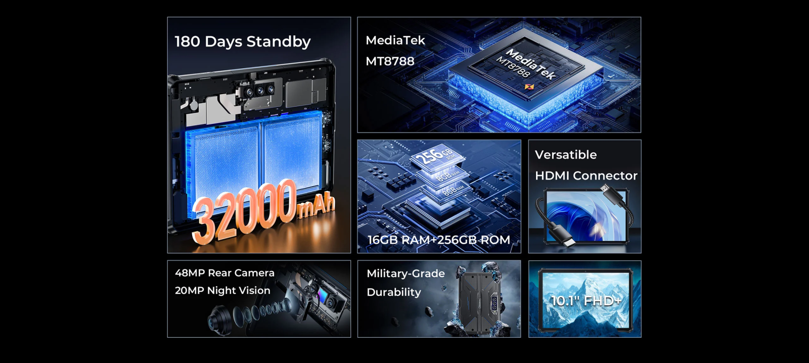 Таблет Oukitel RT8 (черен), 11" (27.94cm) WUXGA IPS дисплей, осемядрен MediaTek Helio G99 2.2GHz, 6GB RAM, 256GB Flash памет (+microSD слот), 48 + 20 + 5 & 32 Mpix камери, Android511.78 лв