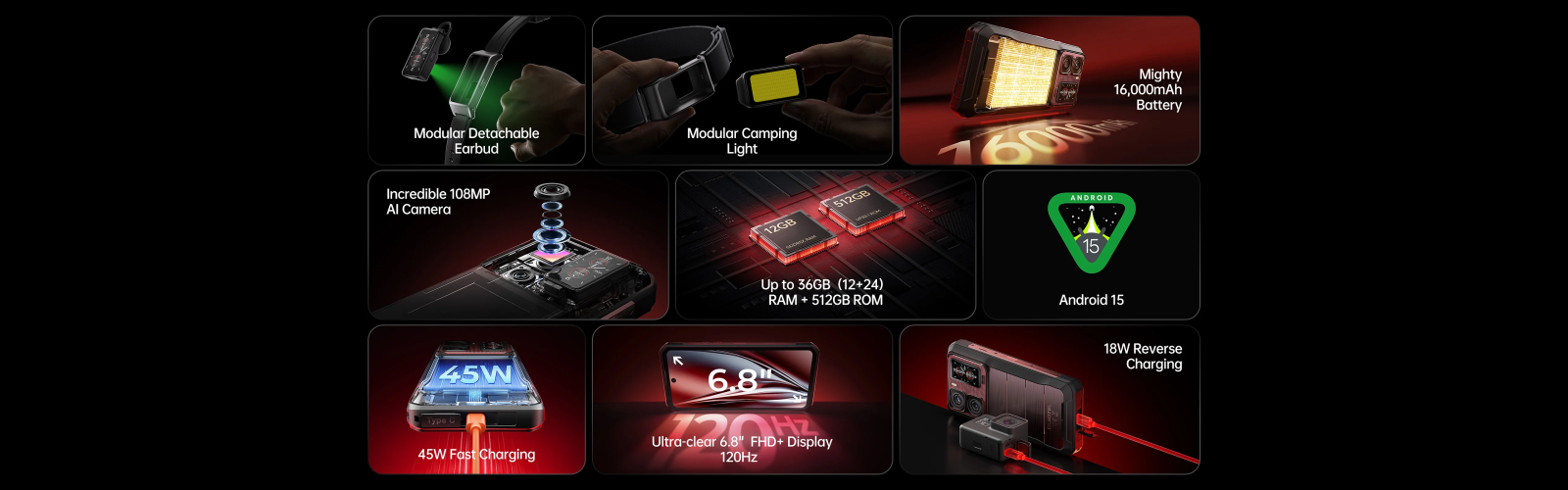 Смартфон Ulefone Armor 33 (черен), поддържа 2 SIM карти, 6.95" (17.65cm) FHD+ IPS 120Hz дисплей, осемядрен MediaTek Helio G100 2.2 GHz, 16GB RAM, 512GB Flash памет (+microSD слот), 50 + 50 + 64 & 32 Mpix камери, Android682.17 лв