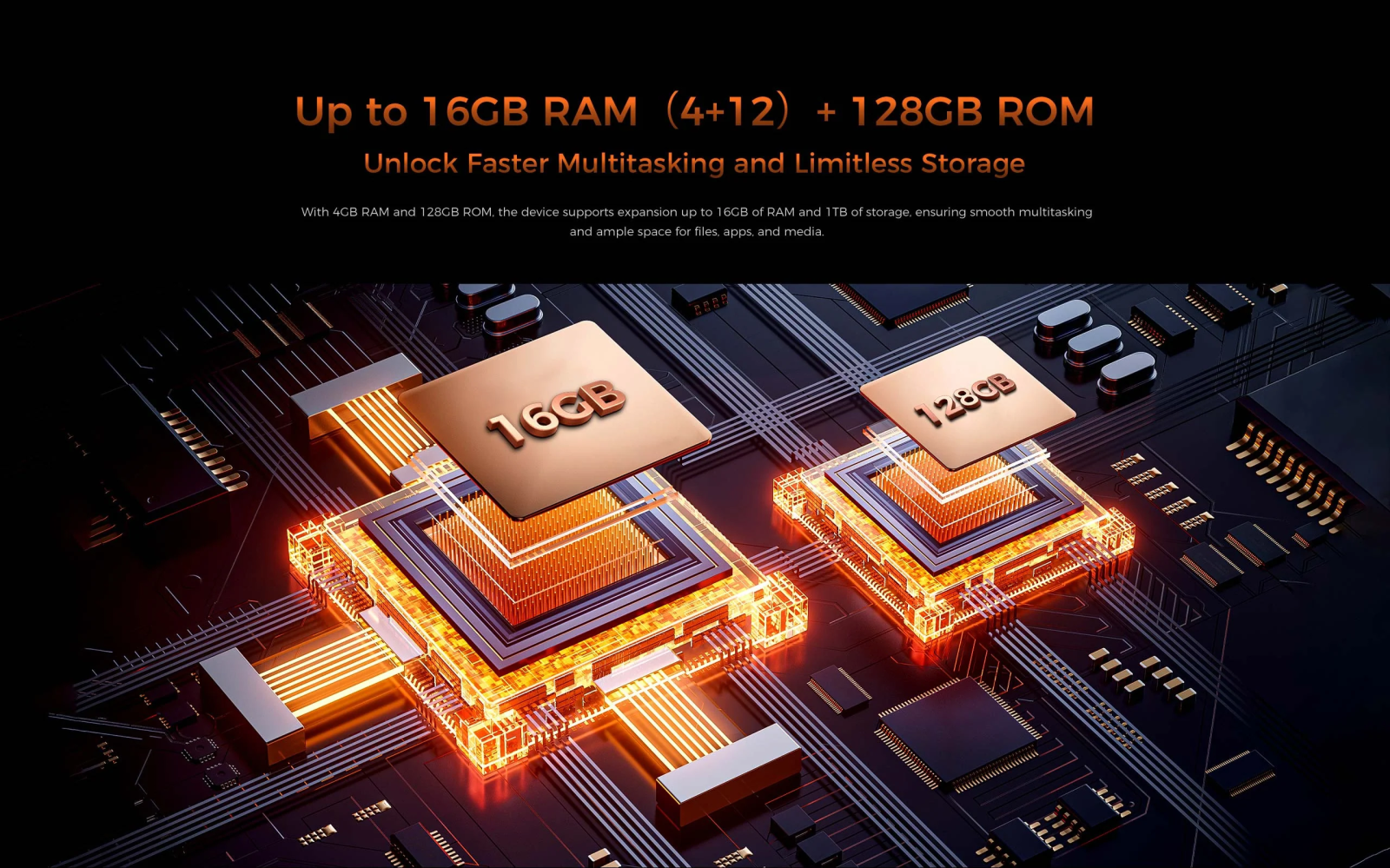 | Memory Expansion | Up to 16 GB (4 GB + 12 GB virtual RAM) |