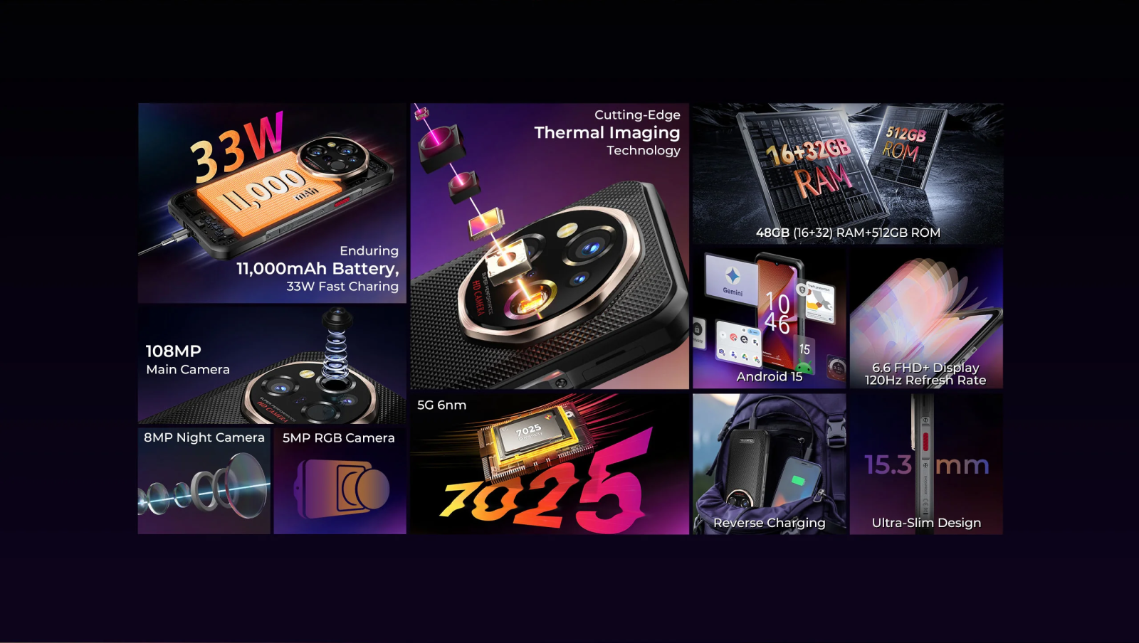 Смартфон Ulefone Armor 30 Pro 5G (черен), поддържа 2 SIM карти, 6.95" (17.65 cm) FHD+ 120Hz дисплей, осемядрен MediaTek Dimensity 7300X 2.5 GHz, 16GB RAM, 512GB Flash памет (+microSD слот), 50 + 64 + 50 & 32 Mpix камери, Android785.86 лв
