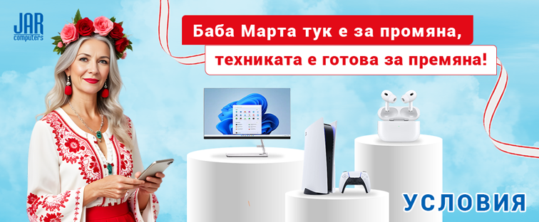 JAR Computers организира, за част от продуктите си кампания с име "Мартенски оферти 26 - Баба Марта тук е за промяна, техниката е готова за премяна".