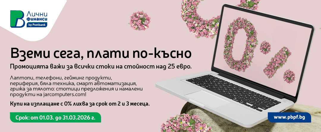 JAR Computers организира от 6 до 8 март 2026 г. вкл., за част от продуктите си кампания с име "Празнувай деня на жената с промокод 8MART26".