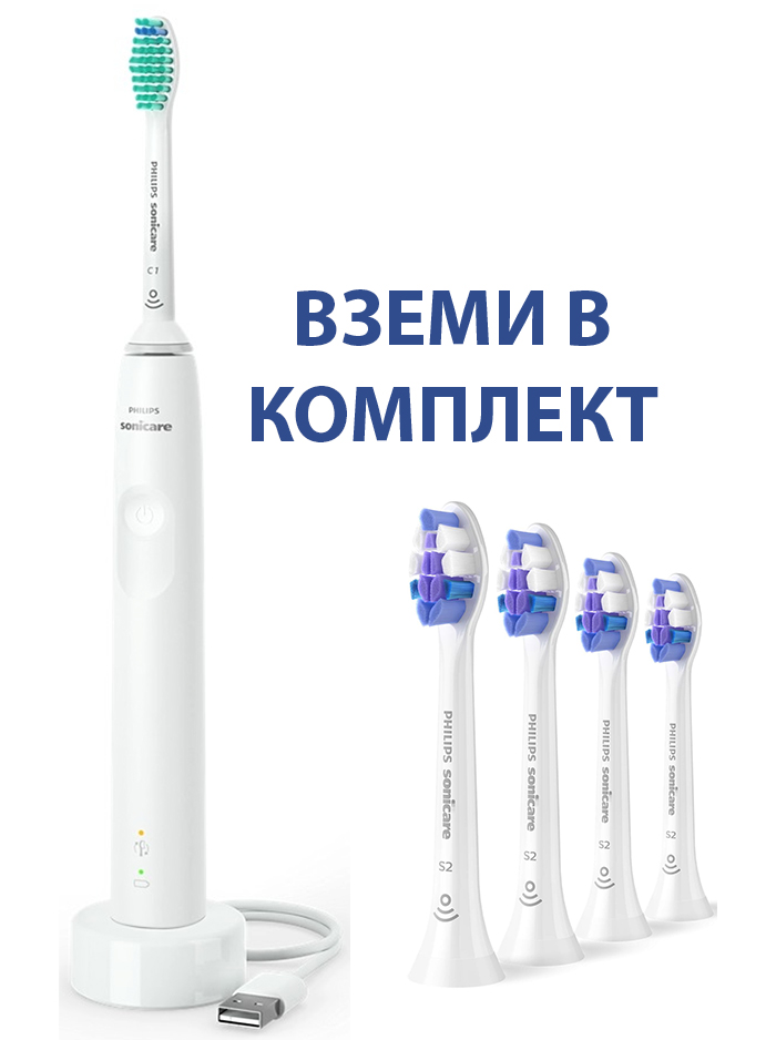 Комплект звукова електрическа четка за зъби Philips Sonicare 3100 Series HX3671/13 с 4 бр. резервни глави Philips Sonicare Sensitive HX6054/87