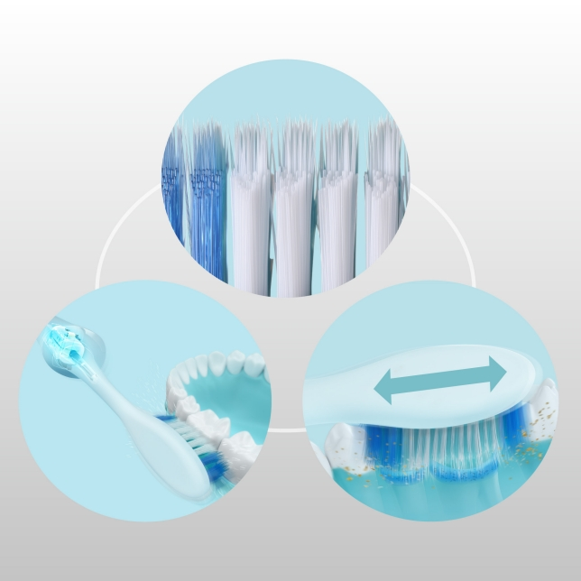 Екстра фините косми на четката достигат оптималната дълбочина 3 мм в пародонталните джобове.