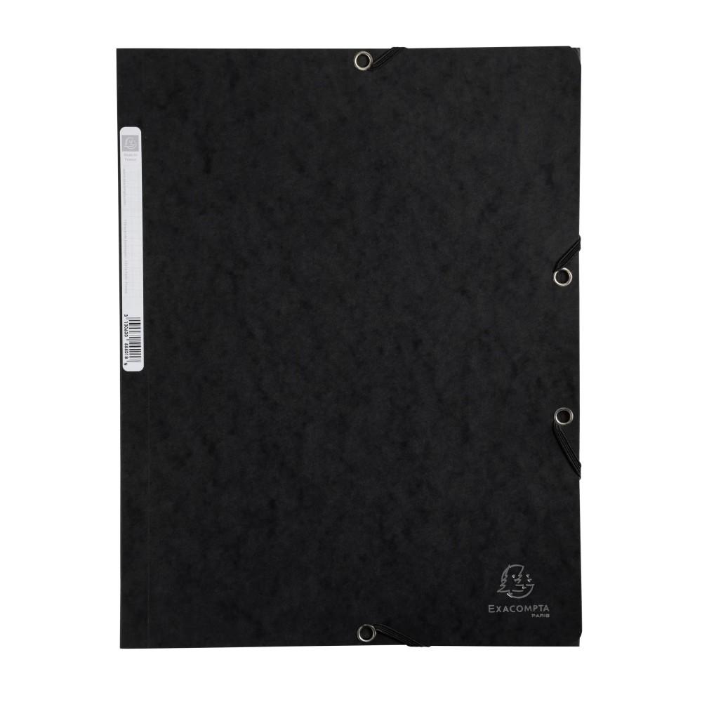 Папка с ластик и 3 капака EXACOMPTA Premium, A4, Genuine картон 400 г, черна