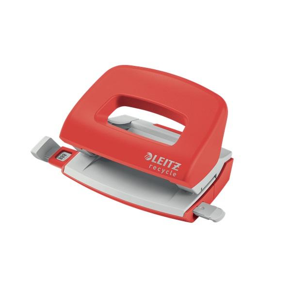Перфоратор LEITZ NeXXt Recycle, за 10 л.(80 г), ограничител, 100x70x81 мм, пластмаса + метал, червен