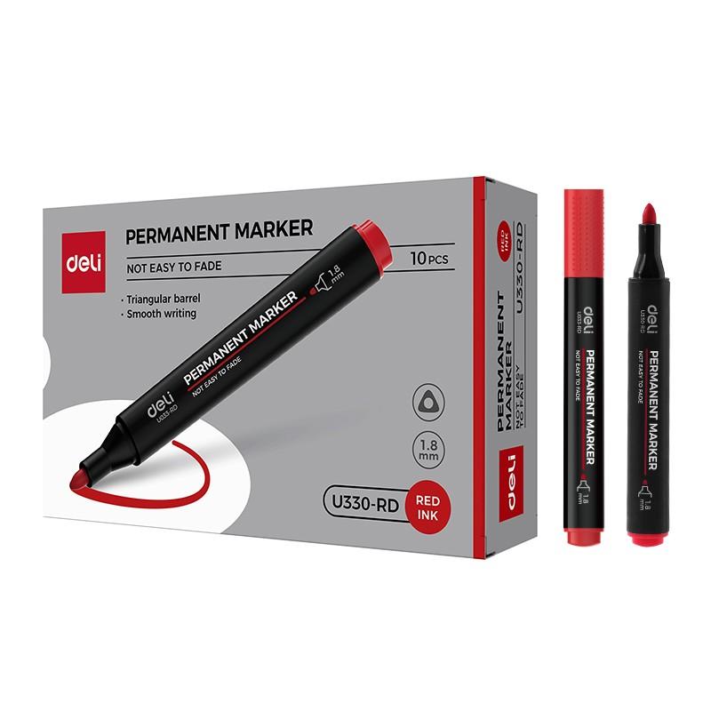 Перманентен маркер Deli EU330-RD, объл връх 1.8 мм, червен