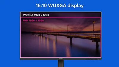 This Philips WUXGA (1920 x 1200) 16:10 monitor is equipped with an IPS panel for wide viewing angles. The 100 Hz refresh rate ensures smooth performance. It features SoftBlue technologies to reduce eye strain and support all-day productivity.