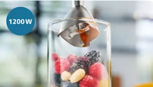 1200 вата чиста мощност на раздробяване Блендирайте дори най-твърдите съставки с нашия най-мощен ръчен блендер досега. Насладете се на всичко – от домашно приготвено ядково мляко до смутита със замразени плодове – за нула време. | ![]() |