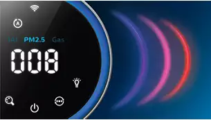 Дисплей за качеството на въздуха Вижте с един поглед качеството на въздуха във вашия дом в реално време. Дисплеят показва нивото на алергени, газове и PM2.5 в цифрова форма, както и с интуитивен цветен пръстен. | ![]() |