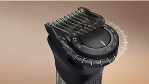 Равномерно подстригване с точна дължина за перфектния външен вид Нашият първокласен прецизен гребен с 11 настройки за дължина на стъпки по 0,2 мм от 1 до 3 мм осигурява максимална прецизност за подстригване на точната дължина, която искате, за да изглеждате перфектно. | ![]() |