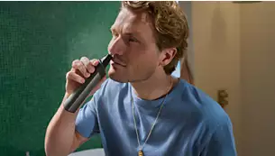 Контролирайте нежеланото окосмяване в носа и ушите Тримерът "всичко в едно" е проектиран да премахва нежеланото окосмяване в носа и ушите нежно и удобно, като ви помага да избегнете наранявания и порязвания. | ![]() |