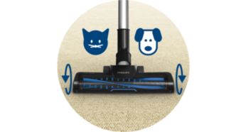 Turbo brush позволява дълбоко почистване на килими, премахвайки лесно коса и пух. Въртящата се глава в накрайника активно премахва малки прашинки и косми на домашни любимци, а резултатът – по-ефективно почистване.