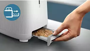 Почистването на вашия тостер е по-лесно с подвижната тавичка за трохи Отстраняването на трохи е бързо и лесно. Просто плъзнете навън подвижната тавичка и я почистете с кърпа с едно движение. | ![]() |