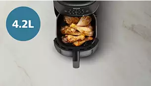 Perfect size for any kitchen with a 4.2 L pan The compact design is ideal for every kitchen large or small. Holds up to 500 g of fries, 6 chicken drumsticks or 500 g of vegetables in a 4.2-liter pan. | ![]() |