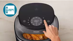 Сензорен екран за управление без усилие Лесен за използване сензорен екран, който има 12 предварително зададени настройки, от които да избирате: замразени пържени картофи, пресни пържени картофи, пилешки бутчета, месо, риба, ястия за закуска, зеленчуци, мъфини, веган ястия, сушени плодове, поддържане на топлина и бутон за любими, с който можете да запазите своя собствена предварителна настройка. | ![]() |
